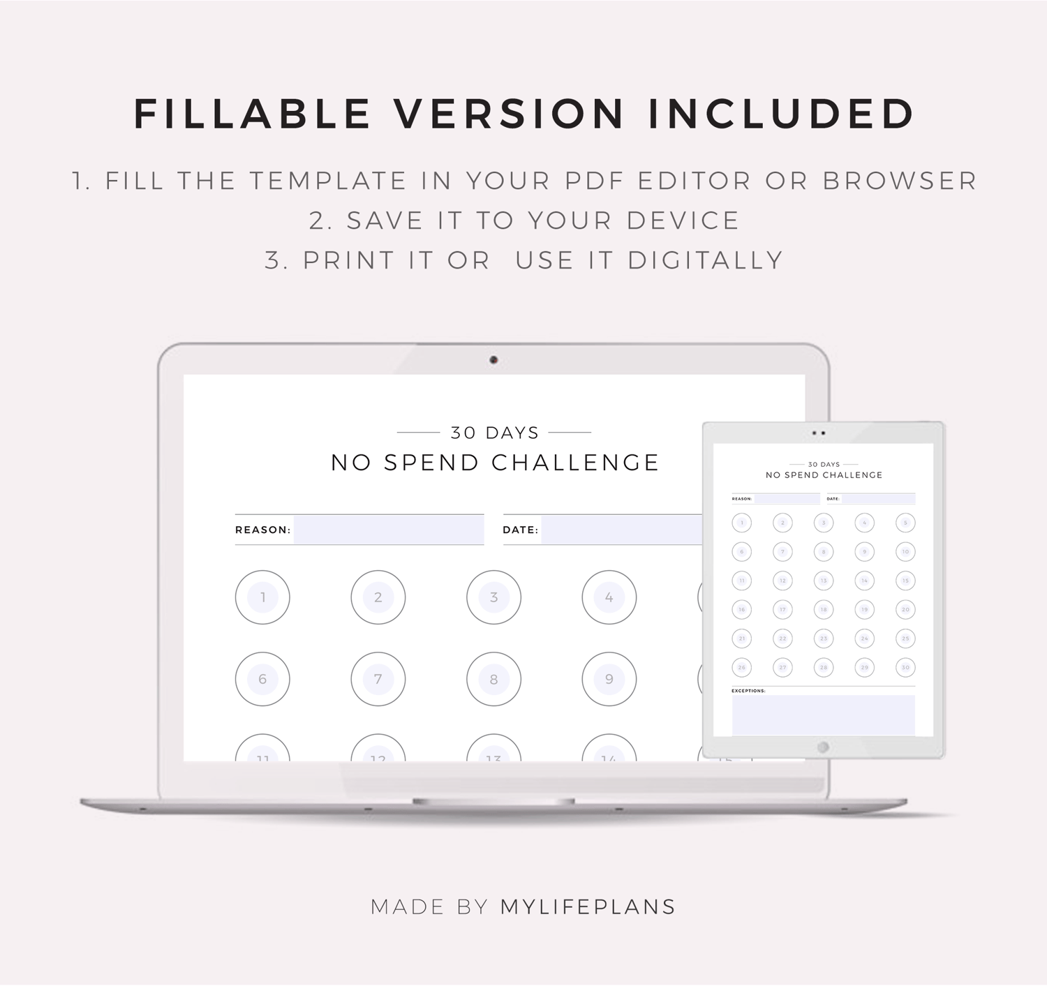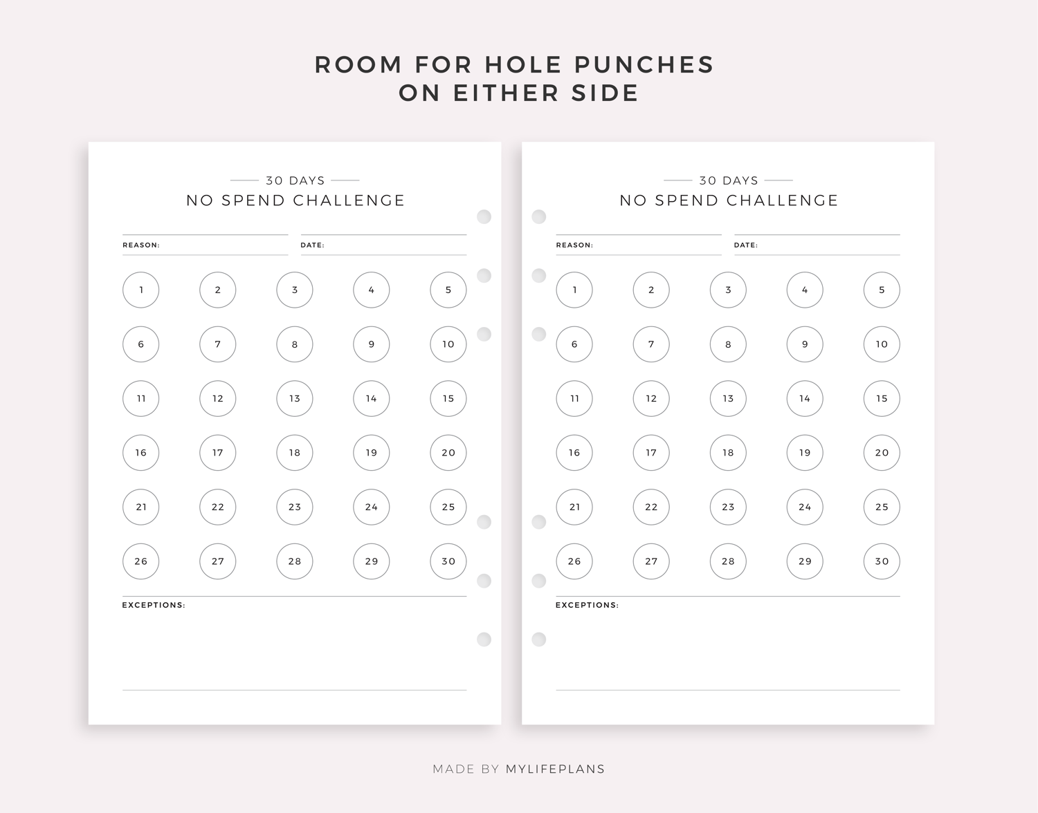 30 Day No Spending Challenge, Money Saving Challenge, Savings Tracker