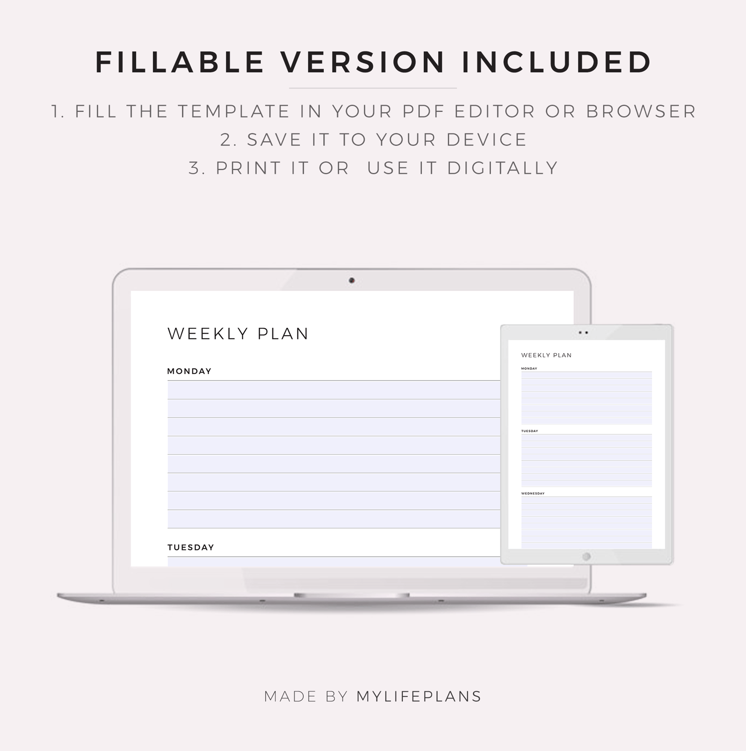 This is a printable weekly planner — just download, print, and start using it right away.