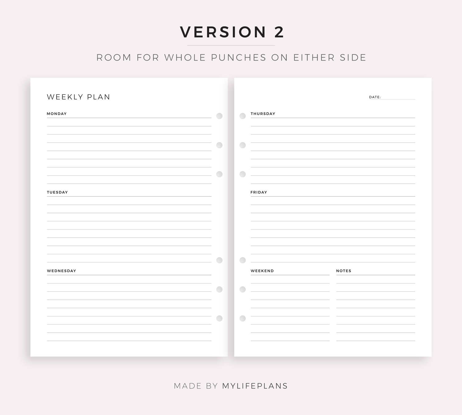 Week on 2 Pages, Week At a Glance, Weekly Schedule, Weekly Agenda, Minimal Weekly Planner Printable PDF, A4/Letter Size