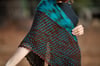 Tiny Birds is an asymmetrical triangle wrap with an unusual stitch pattern designed to interweave the colours of a busy variegated yarn in fascinating ways. It begins with a crossover stitch which is later contrasted by a unique 2 coloured lace mesh edge which then breaks up the variegated colours and allows each to shine.