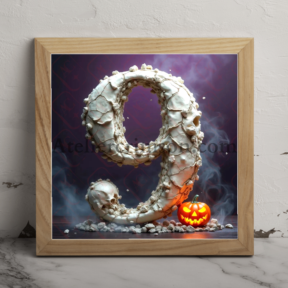 Number 9 spooky character skull Halloween Discover our Spooky Skull Alphabet! Each character is a 3D masterpiece of bone and shadow. Perfect for Halloween designs, gothic projects, or unique wall art. 💀✨ Click to download this high-resolution character and elevate your creations with haunting elegance!