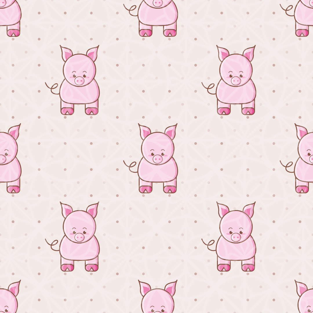 Kawaii pig seamless vector pattern with polka dot background. Cute farm animal illustration.