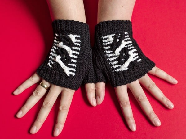 Sometimes, you just need that bit of extra warmth on your hands, not on your arm. Thus, these mitts cover the wrists only. The decorative Tunisian cables are worked with Tunisian short row cords and cables, a technique I invented. The rest of the mitts is worked in slip stitch crochet, making them hug your hands. And of course, you can work a longer version.