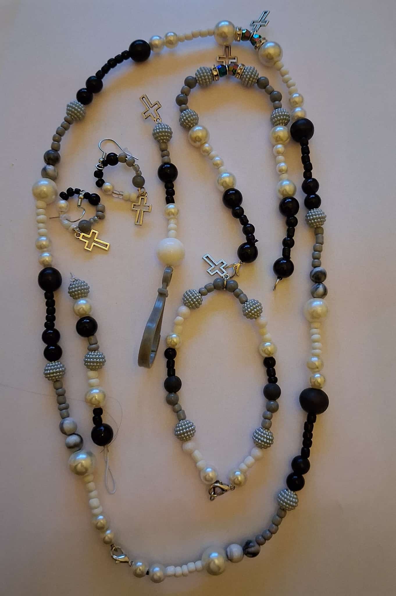 Sieradenset compleet zwart-wit-zilverkleurig