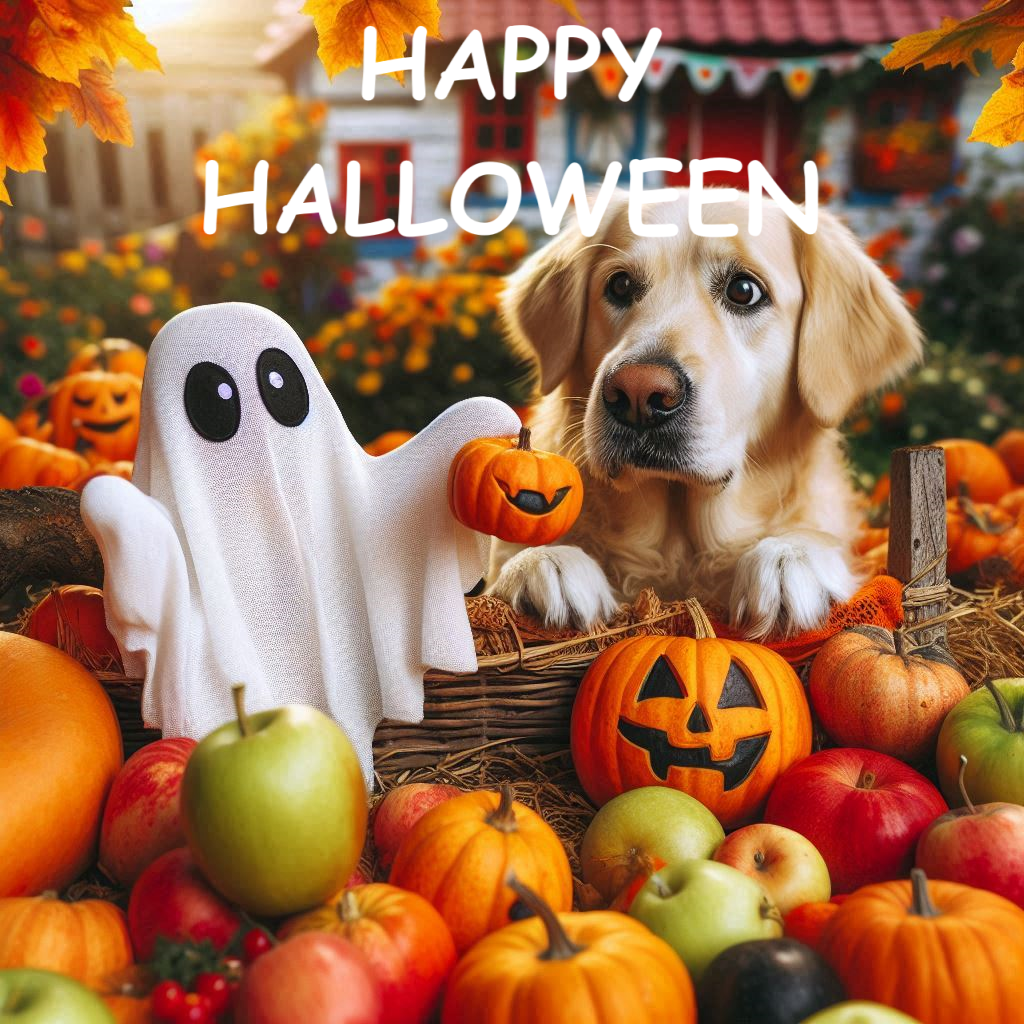 Cute dog in the pumpkin patch, Happy Halloween. You get a PNG file 1024 x 1024 pixels.