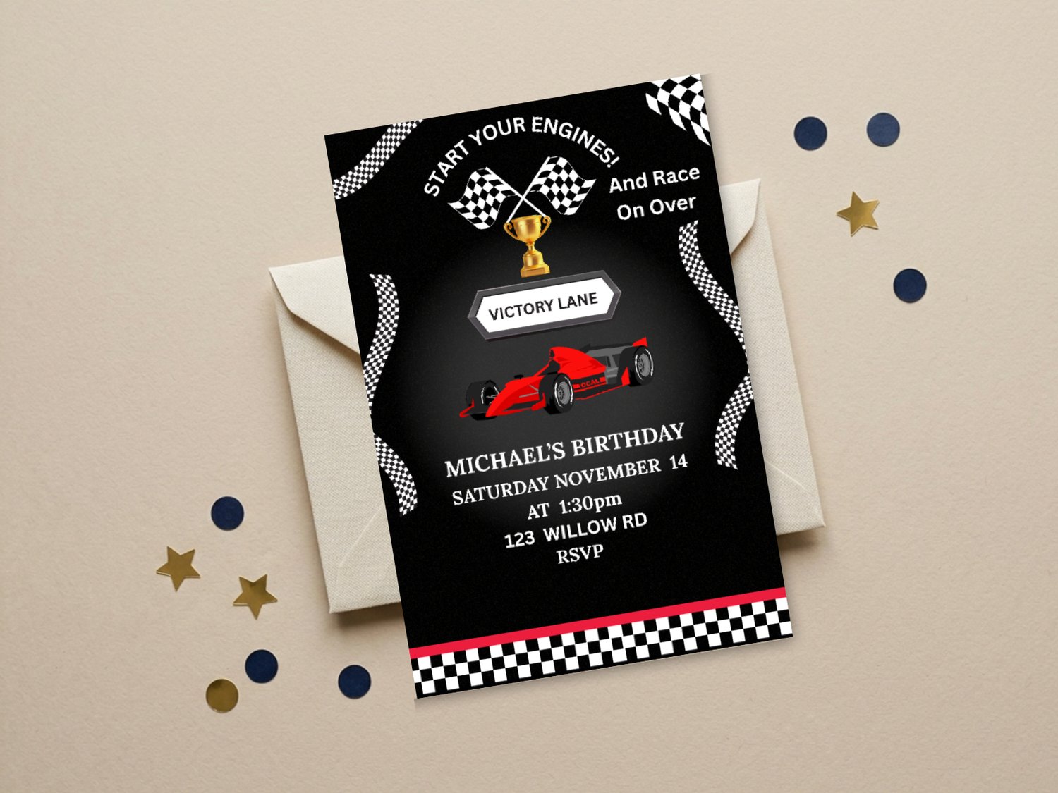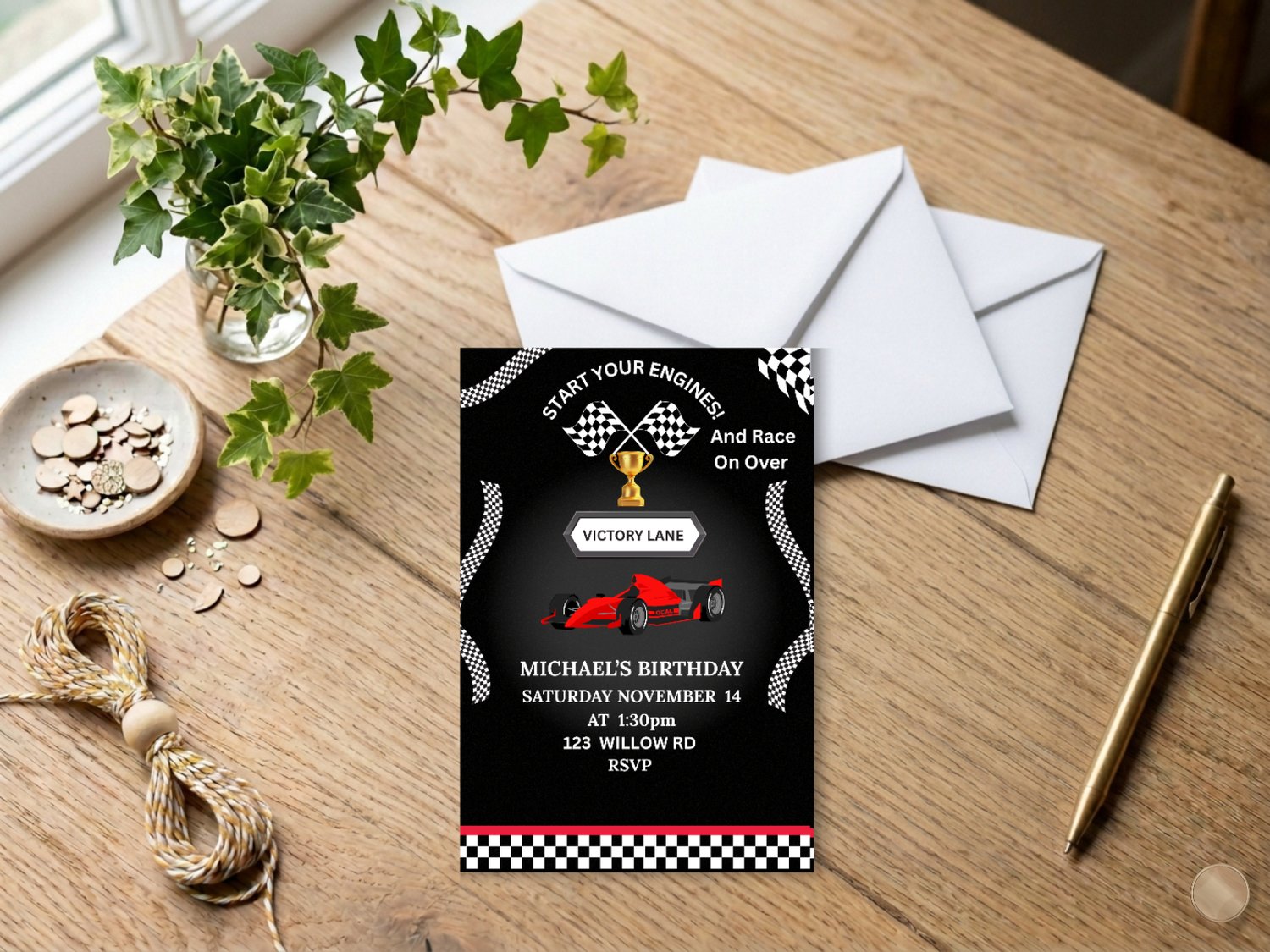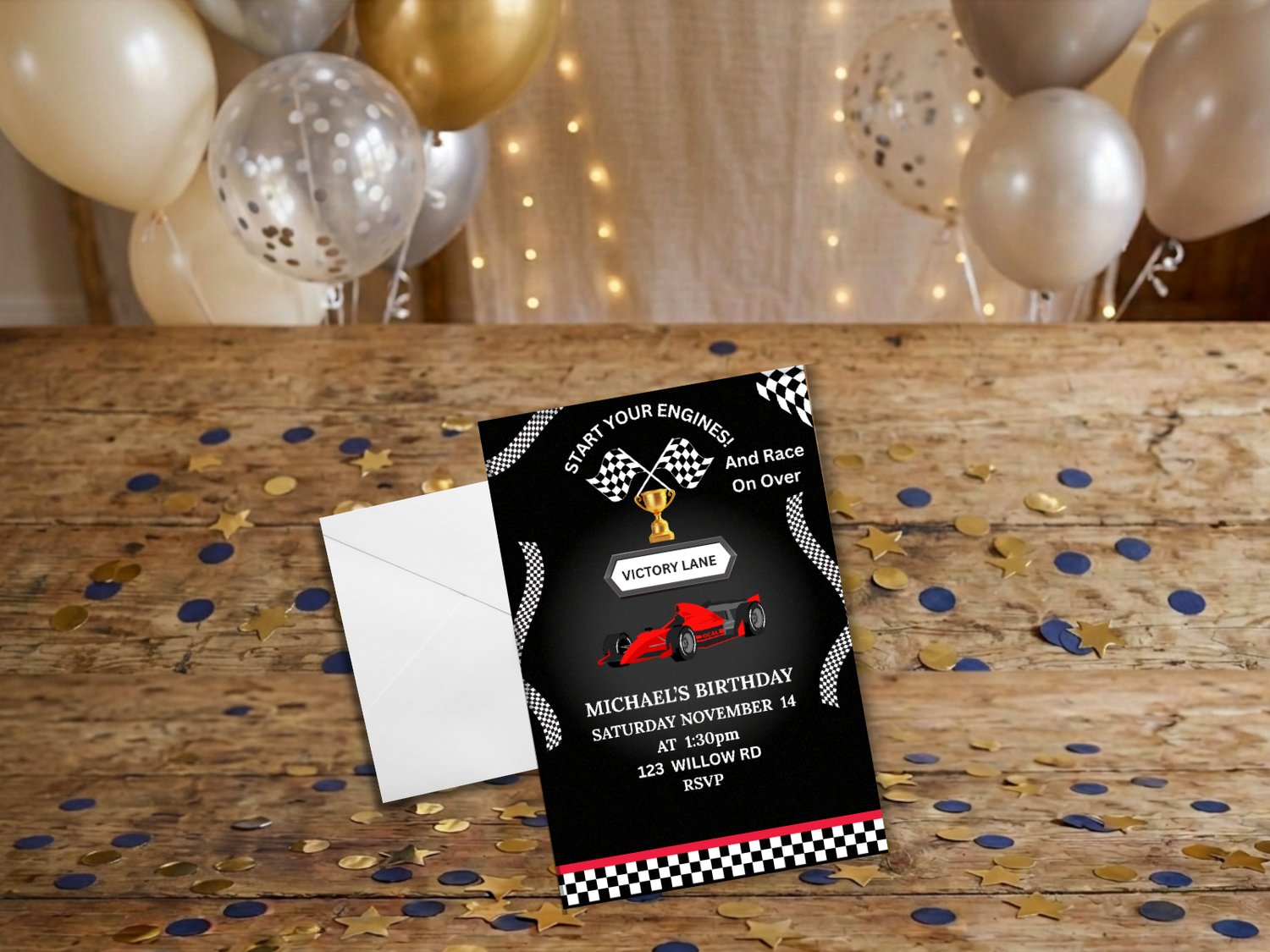 Race Car Birthday Invitation β Start Your Engines Party Invite (Editable PDF)