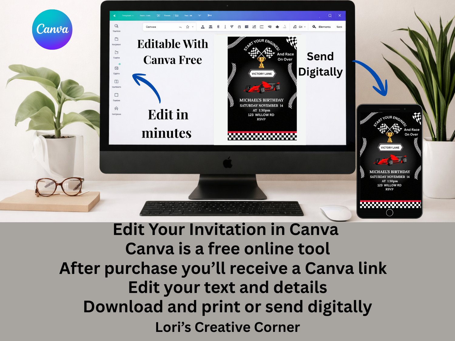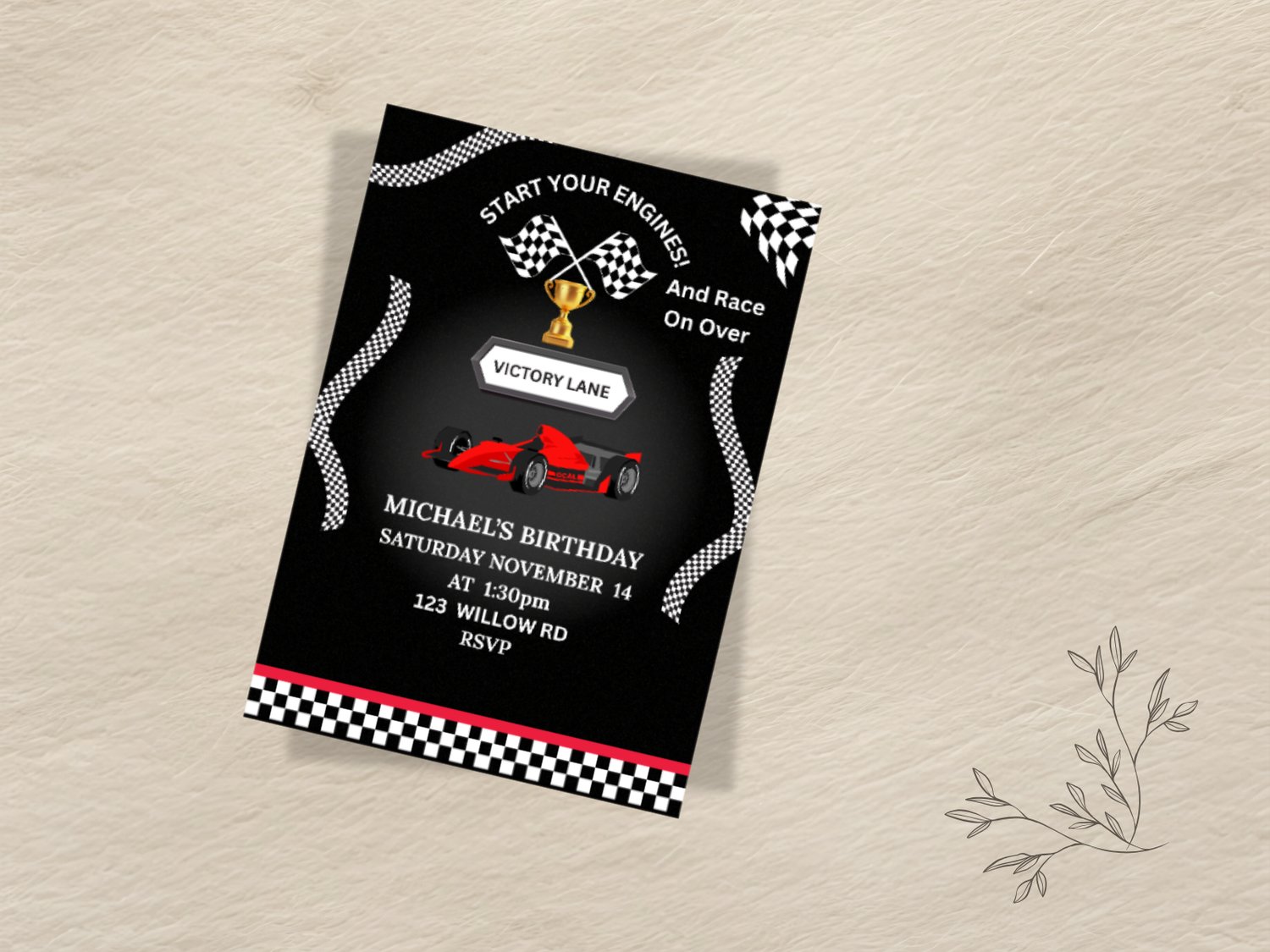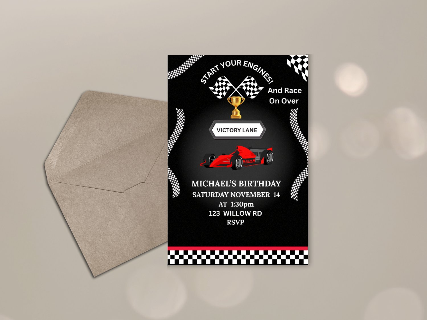 Race Car Birthday Invitation β Start Your Engines Party Invite (Editable PDF)