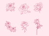 The brush set includes Single Roses, Rosebuds, Rose heads, and Roses with Stems, which can be used to create stunning botanical compositions.