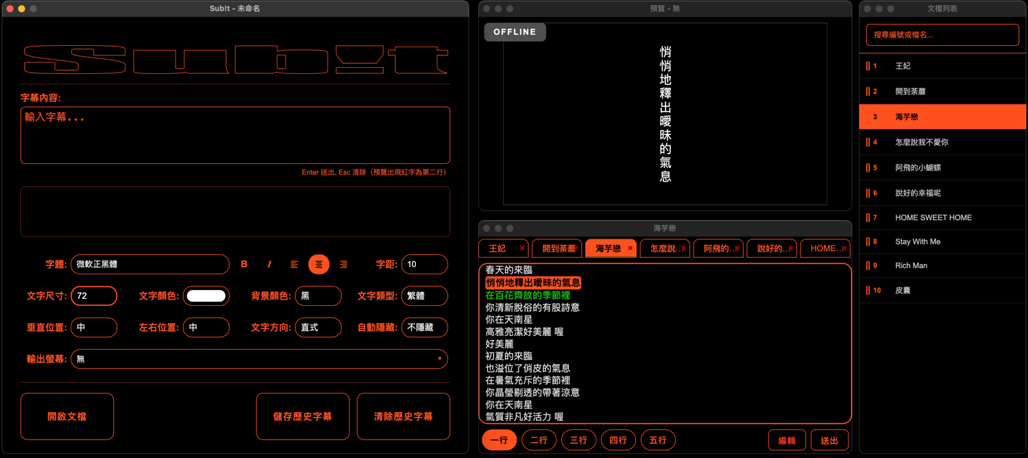 直覺輸入,取代繁瑣編排。即時打字或匯入多檔文字,自動生成字幕列表。
