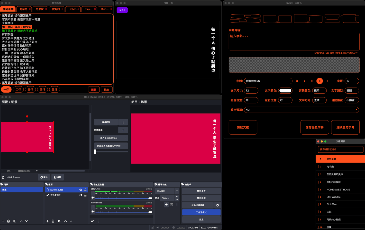 同步推送到外接顯示器、投影機。每屏獨立自訂字體、格式,完美適配現場。