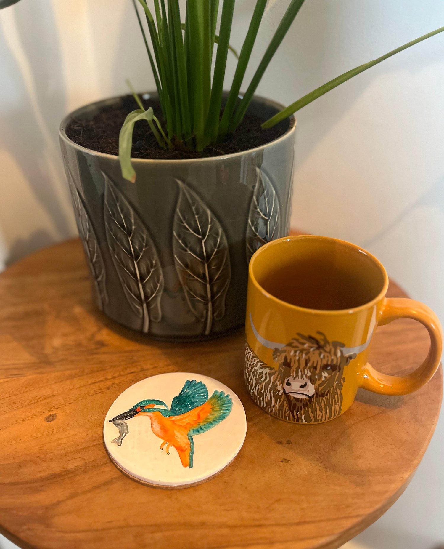 This handmade coaster is made from polymer clay and then hand painted. It has been coated in a heat resistant and waterproof varnish so it is both functional and decorative. Due to the piece bing hand painted there may be some variation in colour or pattern. The coaster is made to order