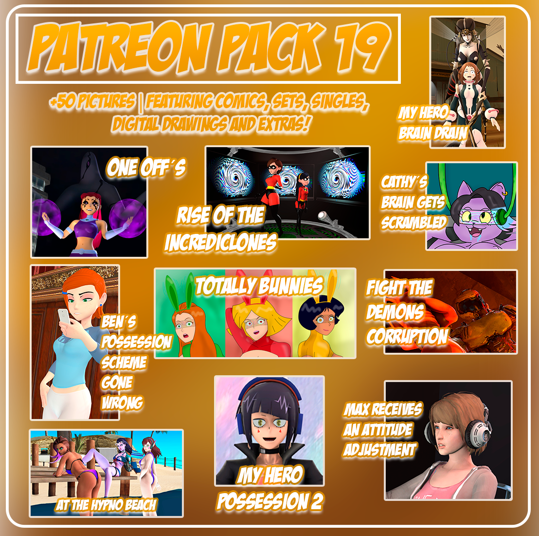 The Supercasket Packs 17-19 bundle contains all 235 pictures featured in the previously named Patreon packs 17, 18 & 19.