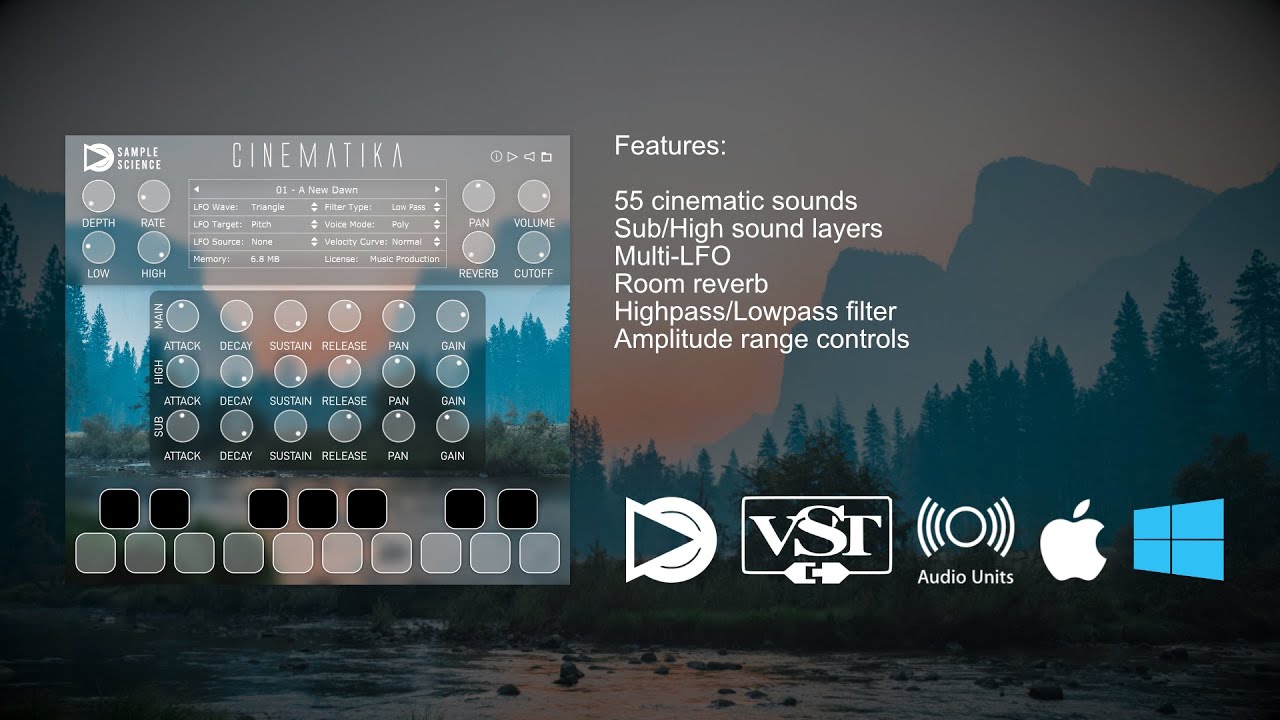 Cinematika is a sophisticated collection of 55 cinematic sounds perfect to create background atmospheres and sound beds for films, documentaries, and YouTube videos.