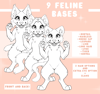 This is an extension of my first base pack! This one is for all the cat people out there! This is a front and back base pack that is perfect for refrence sheets and adopts. It comes with 9 feline types (front and back view), 3 hair types, and a alternate eye type and claws! It's easy to build off of and make your own!