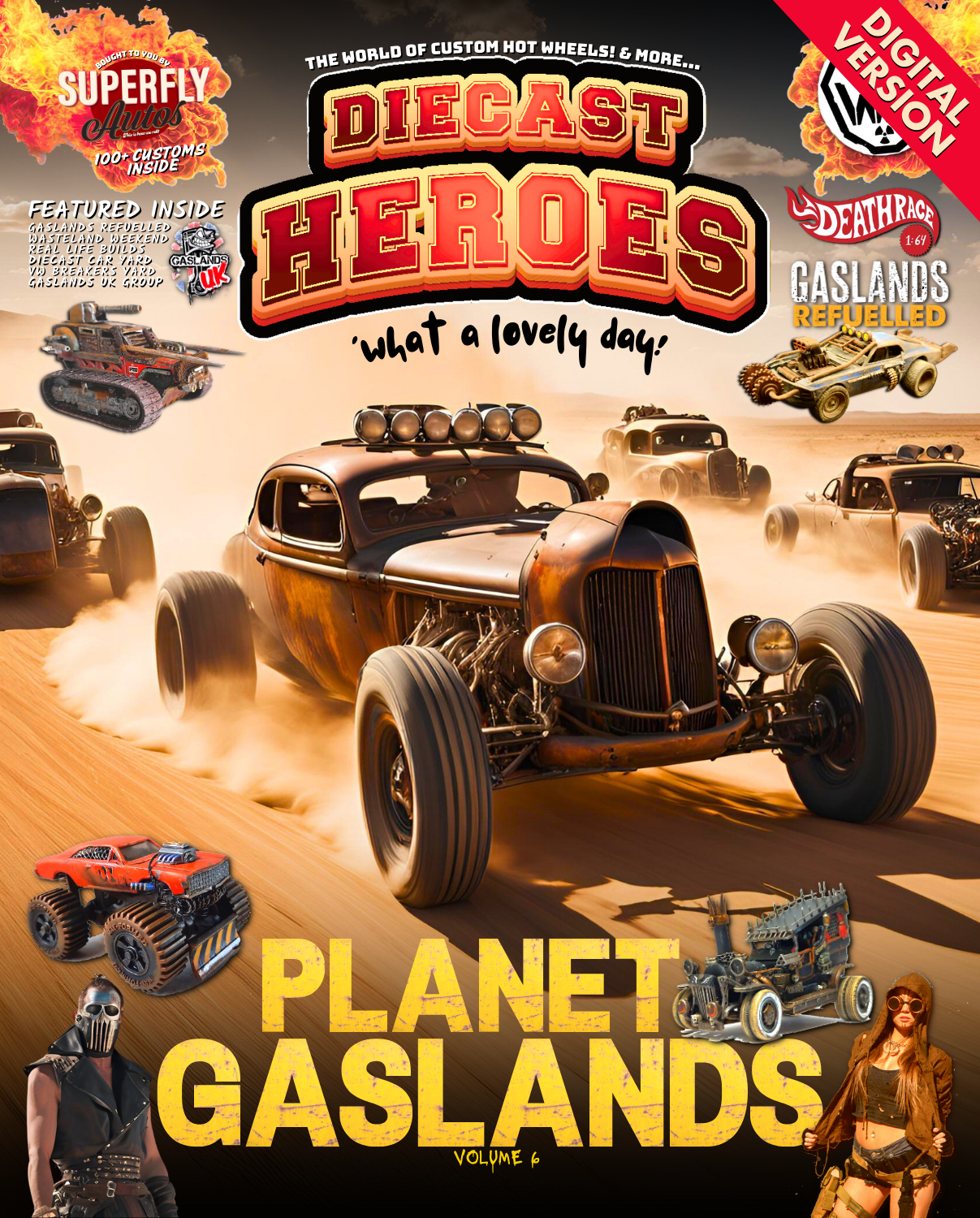 Welcome to the post apocalyptic ''Planet Gaslands'' Volume 6 of Diecast Heroes Magazine, dedicated to the world of extreme desert machines from the world of Gaslands. We have over 100 custom Gasland diecast builds inside and so much more!