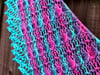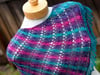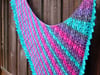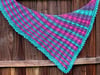 Ordway is worked up in one skein of Tasty Self-Striping from Twisted Fiber Arts plus one coordinating skein in the Vapor colorway. It is worked asymmetrically from tip to long edge with a simple applied edging knitted on after the triangle is finished. Perfect for self-striping or gradient yarns, the lace/cable rib pattern creates a strong diagonal against the stripes. This pattern would even be wonderful for using up leftovers - create your own stripe pattern!