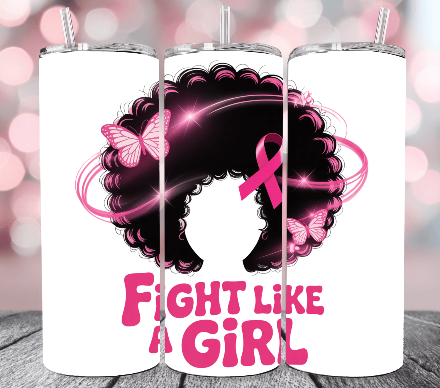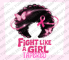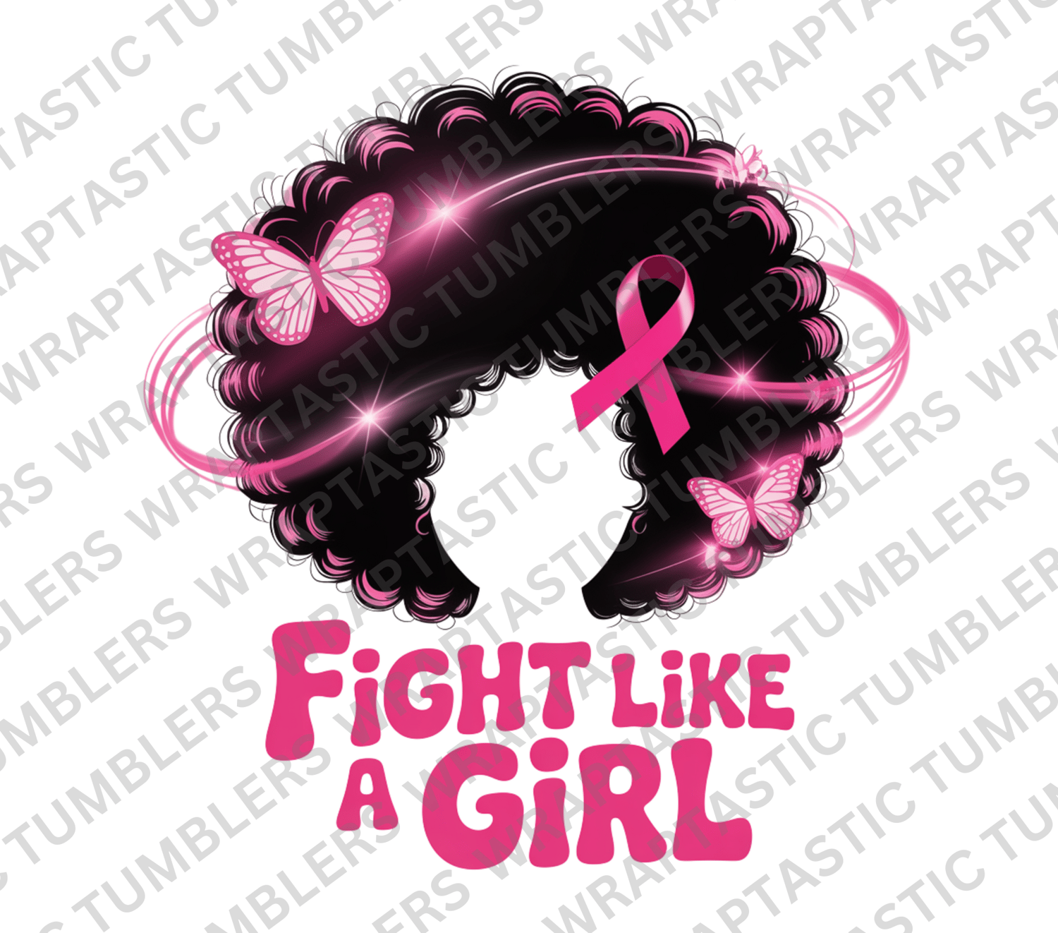 Fight Like a Girl PNG Breast Cancer Awareness Pink Ribbon Afro Butterfly Sparkle Sublimation Digital Download Empowerment Design Clipart