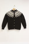 A traditionally inspired Icelandic style yoke cardigan knit using our Shetland Aran Worsted, the cardigan is knit fully in the round with a steek, the sleeves are worked and then the yoke. Please note in the yoke there are a number of rounds where 3 colours are worked.