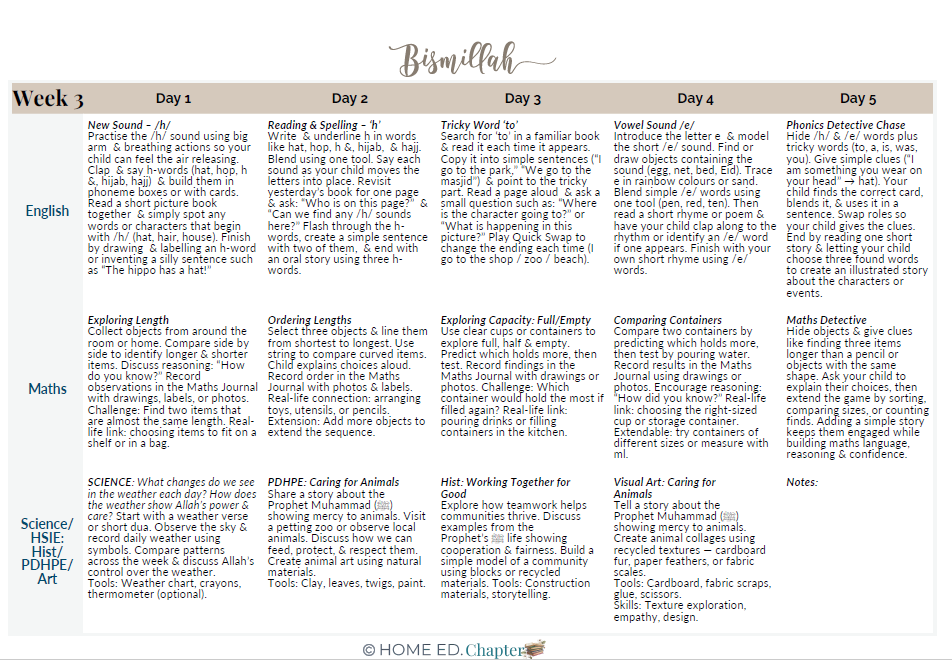 🌱 May this resource be a source of ease, barakah and reassurance as you continue your homeschooling journey.