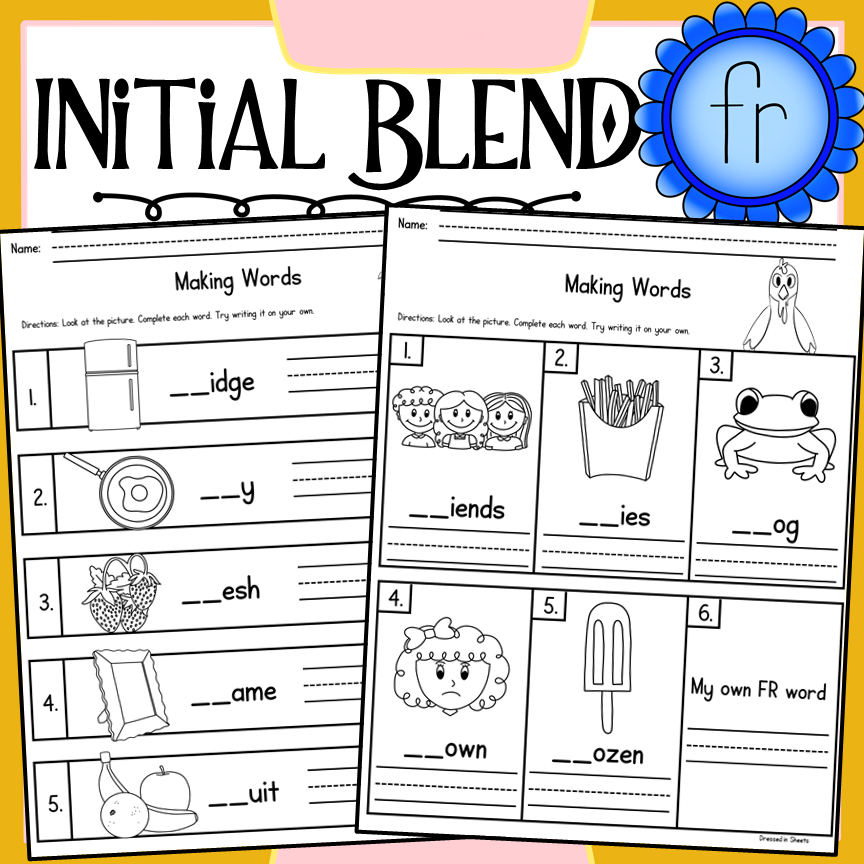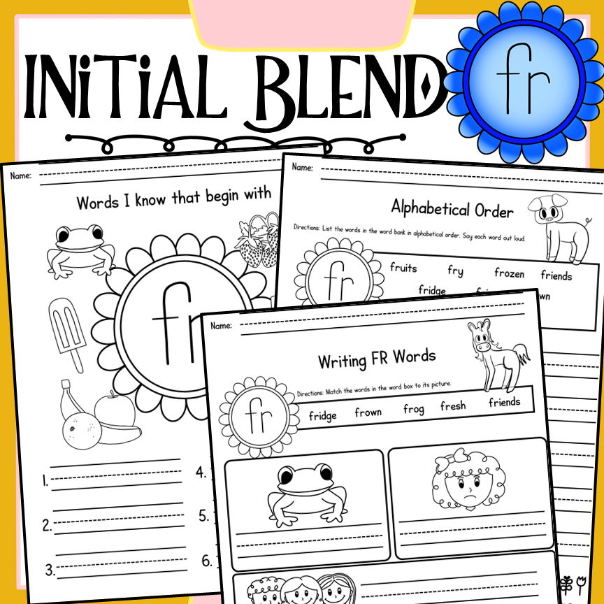 With all the pictures included students will have a visual representation of each blend. Words included: friends, frame, fresh, fridge, fries, frog, frown, frozen, fruits, fry.