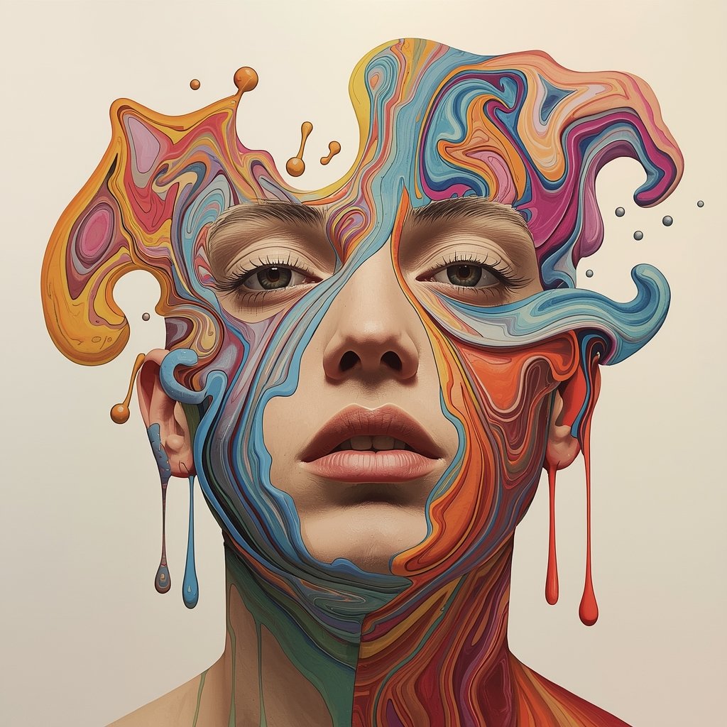 Surreal Woman Face with Fluid Color Swirls — Elite Contemporary Art Masterpiece