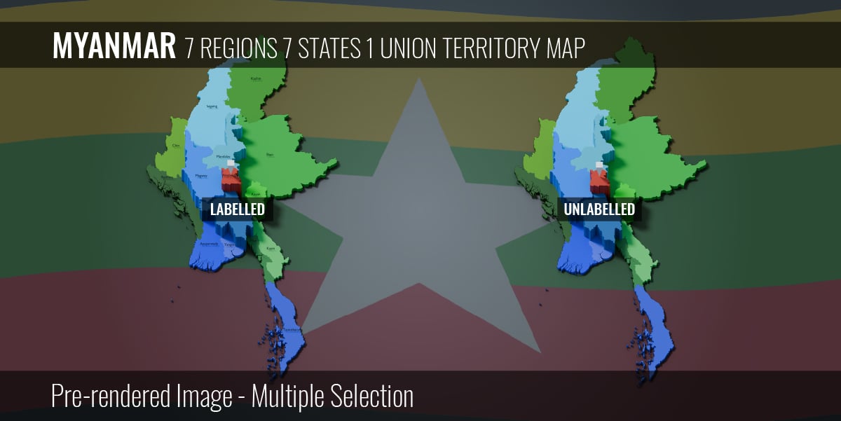 Myanmar (Burma) - 7 Regions, 7 States & 1 Union Territory Map (3D + Pre-rendered Images)