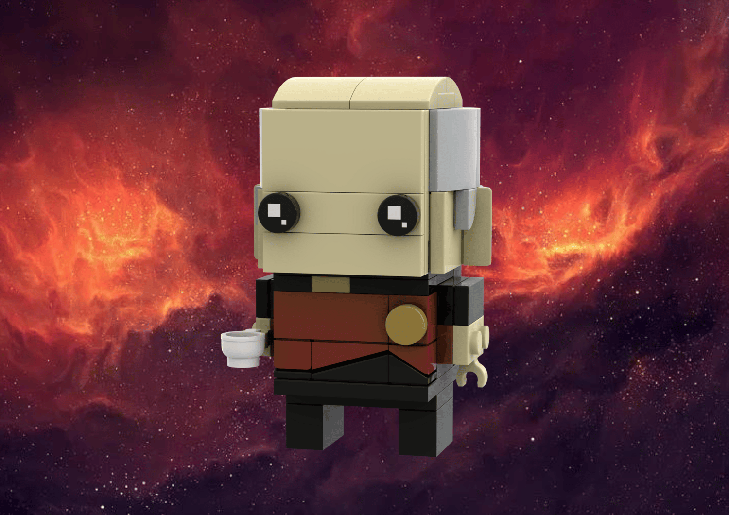 Custom step-by-step instructions and parts list for my "Captain Jean-Luc Picard" Lego Brickheadz from Star Trek: The Next Generation. Complete with Transporter Pad style base and Earl Grey tea.