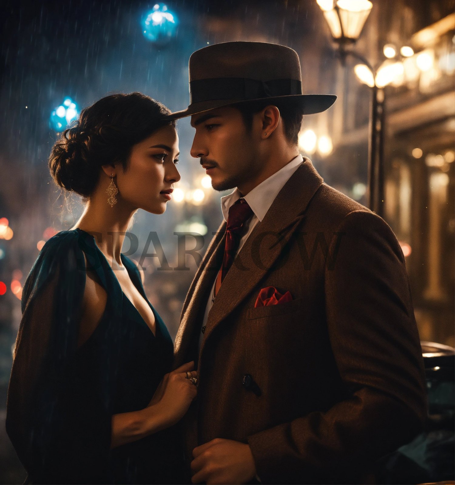 Shadowy cityscape, towering skyscrapers, dimly lit alleys, glow of neon signs, danger, passion, forbidden love, organized crime, sleek black cars, cigars, hidden weaponry, mystery, seductive couple, glamorous attire, intense gazes, secretive embraces, allure, swirling smoke, dark suits, ornate masks, vintage typewriters, flickering candlelight, complex relationships, tension, loyalty, desire, sultry, dangerous world, mafia romance, blood-red roses, silk ties, leather gloves, brass knuckles, shattered glass, playing cards, poker chips, gold chains, diamond-studded accessories, fedora hats, red lipstick stains, old-fashioned revolvers, secret meetings, handwritten notes, velvet ropes, dimly lit speakeasies, champagne flutes, engraved cufflinks, feathered quills, vintage photographs, wisps of gun smoke, double-crosses, silk scarves, brass light fixtures,star-crossed lovers, magical connections, love in the air. Romantic scene, Love concept, Storytelling, Digital art, AI, Creative design, Surreal atmosphere, Dreamy backdrop, Magical elements, Beautiful couple, Artistic composition, Commercial use, Atmospheric lighting, Mystical setting, Relationship concept, Emotive characters, Fictional love, Editorial use, Advertising, Marketing, Social media, Website design, Blog post, Article illustration, Book cover, Magazine layout, Poster design, Brochure, Presentation, E-book, Print material, Digital publication, Educational materials, Background image, Wallpaper, Conceptual art, Romantic moonlit scene, Enchanted forest setting, Moonlit meadow, Silhouetted trees, Nighttime romance, connection imagery, Romantic, Moonlit path, young adult romance, YA, serialized online fiction cover image, Radish, Dreame, GoodNovel, iReader, Vella, SWAG, book, author, writer, blogger, creator