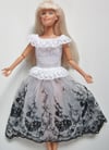 The skirt is made of White netting with black embroidery on and has a pretty edging.