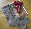 This pattern is worked in the round from the top down, with a heel flap and modified wedge toe. Feel free to substitute your favorite heel and toe.