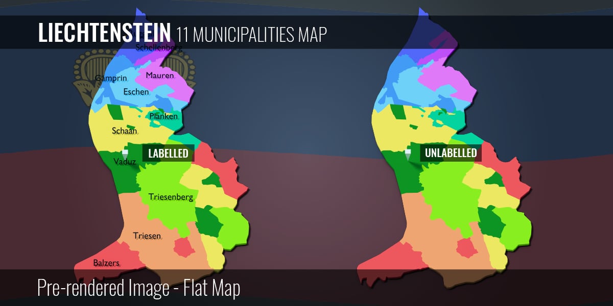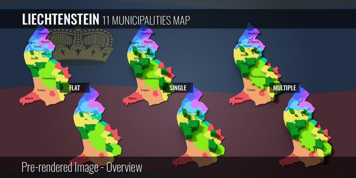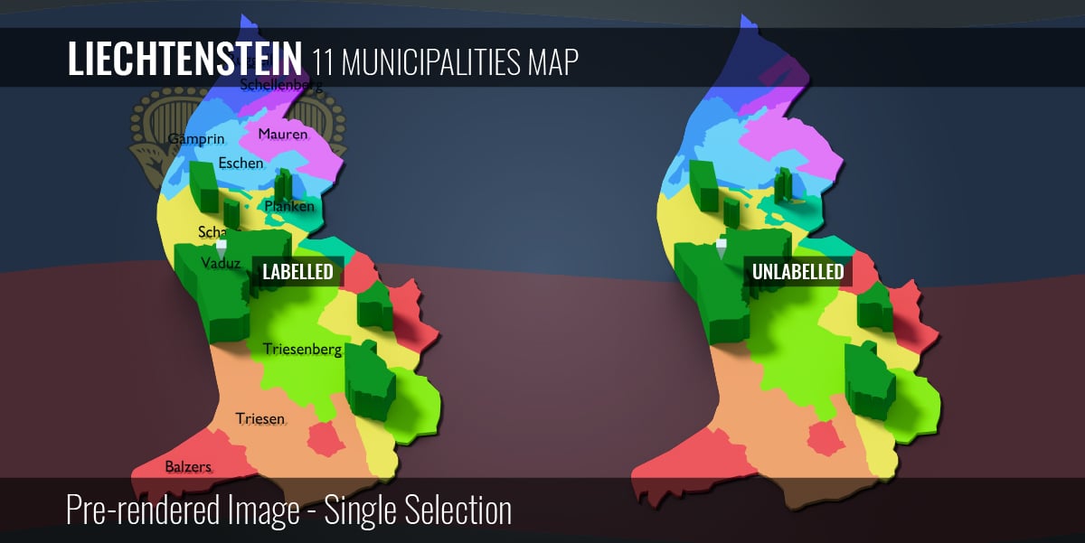 Liechtenstein - 11 Municipalities Map (3D + Pre-rendered Images)