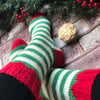 Do you love Christmas socks? I would (and do) happily wear them all year round! They get even more wear when the first Christmas decorations appear! If you love Christmas socks as much as I do, the festive House Elf Socks are the ones for you! They’re made using aran weight sock yarn, making them perfect for cosying up by the fireside, wearing to lounge about, or for pottering around the house as you’re wrapping your Christmas presents. Being knitted in aran yarn means they also make quick last-minute gifts.