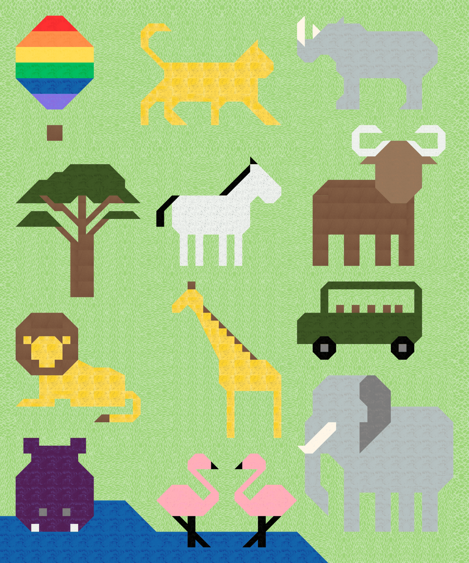 The 2025 Scrappy Block of the Month takes you on a journey through the savannahs and watering holes of Africa. You'll meet the Big Five, a few of their friends, and some ways to travel in style.