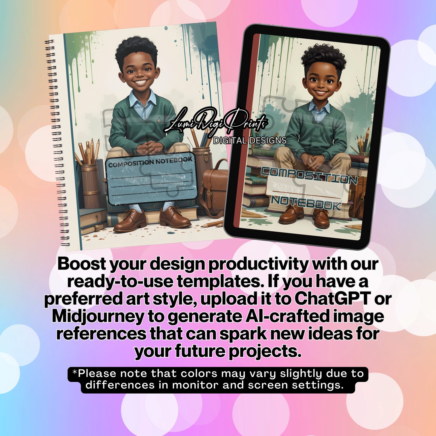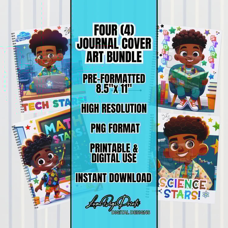Create empowering school-themed printables with Lead & Learn, a set of 4 printable African American boy notebook covers designed for back-to-school season, student journals, homeschool planners, and classroom decor.