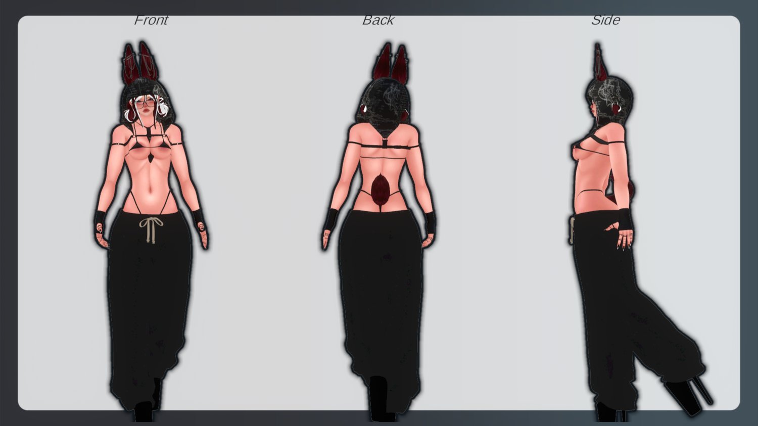piercings, facial piercings, Arrow chain, Eyepatch. Finger arrow, glasses, Gloves, Hood harness, Necklaces, Bralett RR, Tanky, Panties, Shorts, Harness bottoms