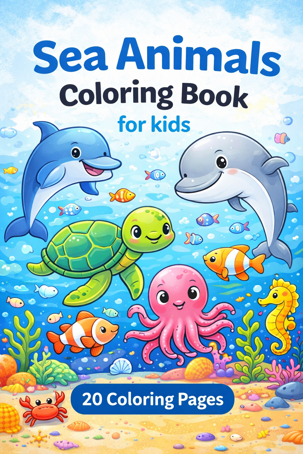 🐠 Sea Animals Coloring Book for Kids – 20 A4 Printable Pages 🌊