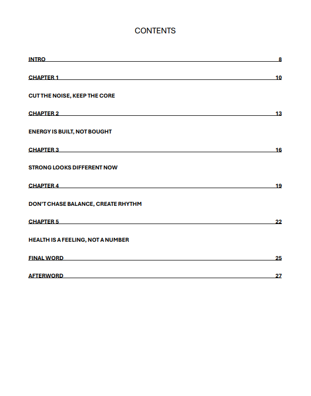Simple Health, Strong Life is a sharp, encouraging guide for those who are tired of extreme wellness culture and ready to return to something real.