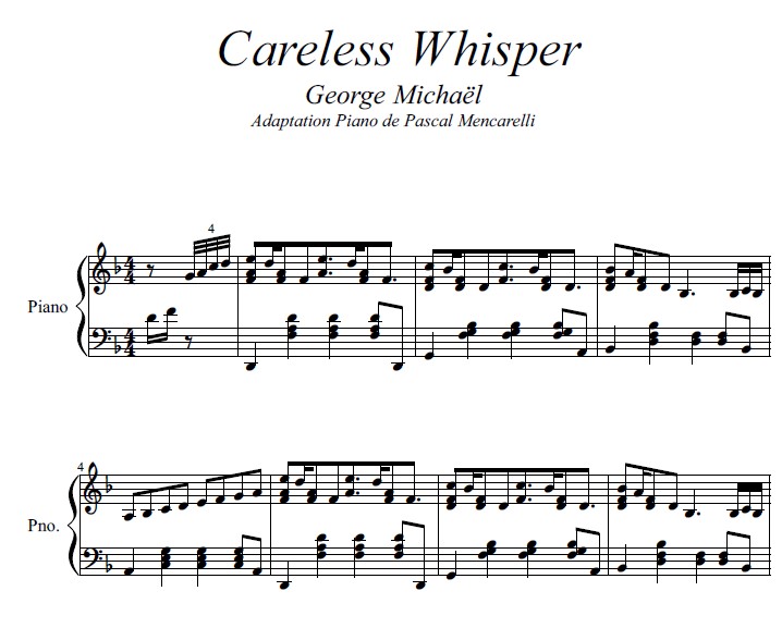 George Michaël - Careless Whisper - Piano Solo Sheet Music