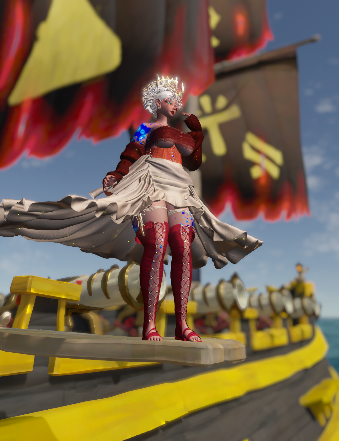 Skirt, corset, sleeves, lace top, headband, curly hair, long braid, knife rope garters, tall shoes - Saikura Haven - Saikura's Haven