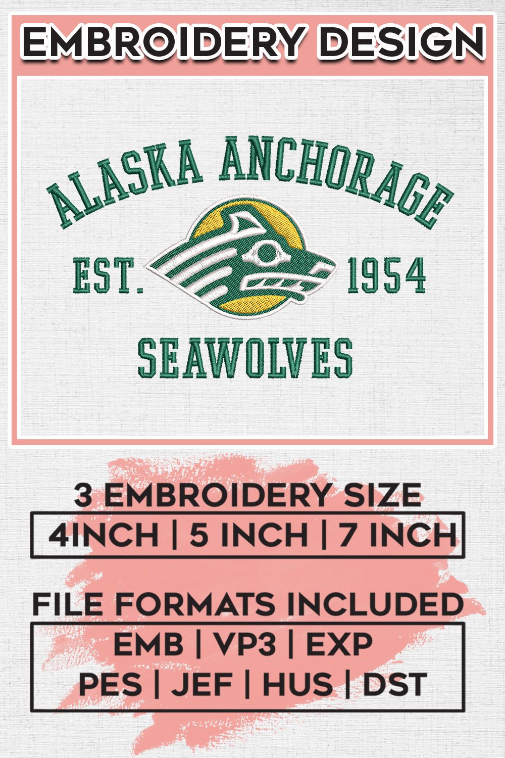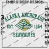 Alaska Anchorage Seawolves Team Est Logo Embroidery Designs, NCAA Alaska Anchorage Seawolves Machine Embroidery Files, NCAA Logo embroidery designs, Ncaa Alaska Anchorage Logo, Digital Download