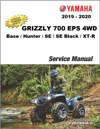 2019-2020 Yamaha Grizzly 700 EPS 4WD Base Hunter SE SE Black XT-R Service Manual