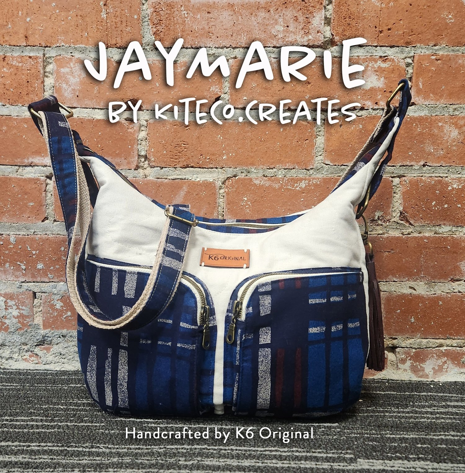 PDF sewing pattern, full color instructions, SVG cutting files for smaller pieces and video tutorial for this modern slouch shoulder or crossbody bag- The JayMarie By KiteCo.Creates.