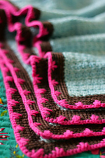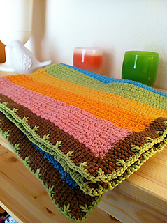 This is a pretty and unique blanket that can be done as a flower motif for girls or leaf motif if you think it’s too girly for a boy. It would look gorgeous in many different color combinations.