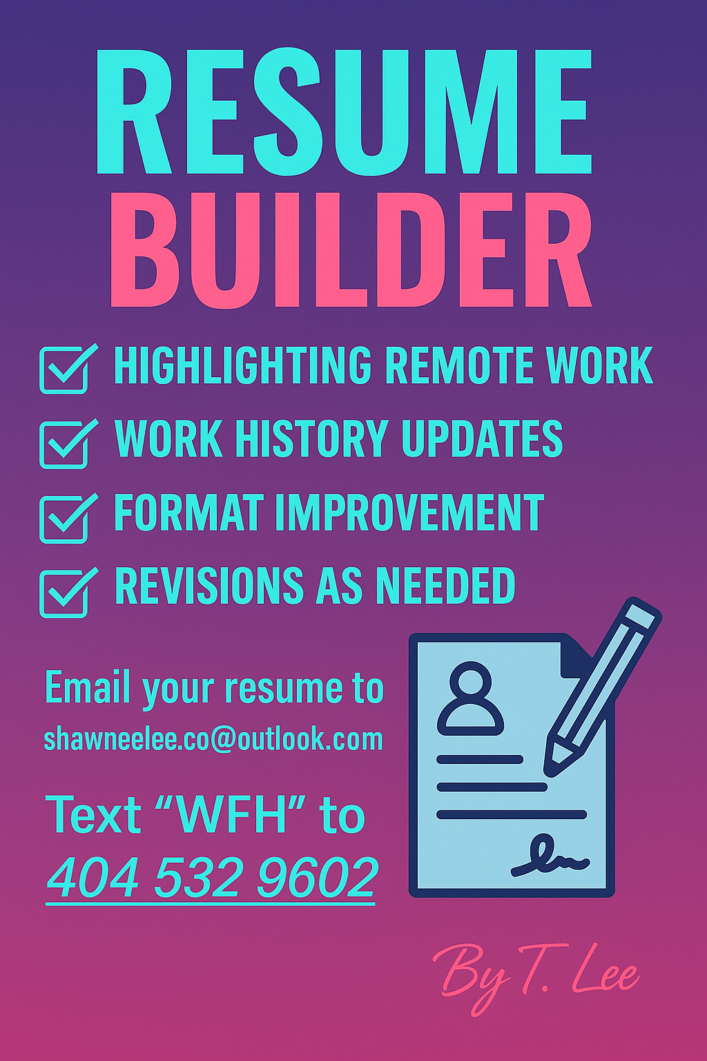 📧 Send your info or existing resume to: ShawneeLee.co@outlook.com