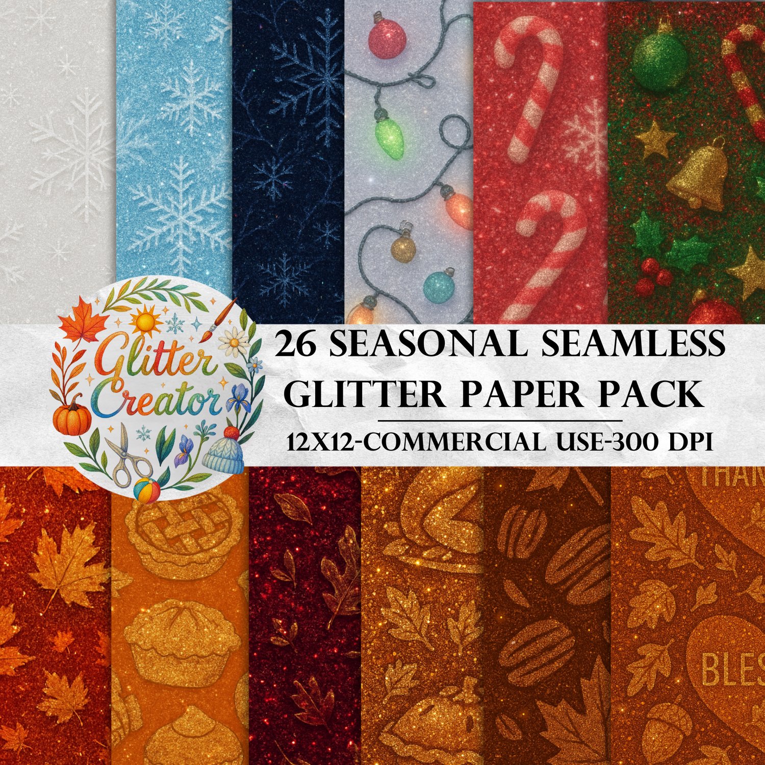 🌈✨ Seasons of Sparkle – 26 Seasonal Seamless Glitter Textures ✨🌈
