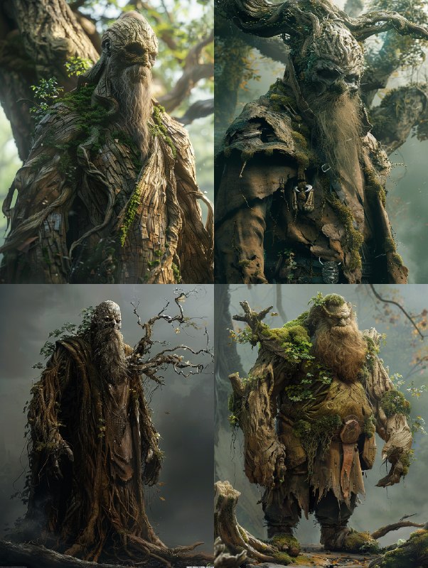 Bring to life a towering Chinese symbiotic creature with this hyper-detailed AI prompt. Perfect for cinematic concept art, it generates imposing elder characters with massive, solid silhouettes and rugged bark-like skin, complete with deep fissures and moss. Broad tree-like torsos are armored with wooden plates, while voluminous dark brown robes evoke ancient wisdom. Strong directional lighting and deep shadows create dramatic, three-dimensional realism. Capture contemplative expressions and intricate textures that feel alive. Ideal for film, concept art, and portfolio work, this prompt delivers majestic, unforgettable characters with a mystical, natural aura.