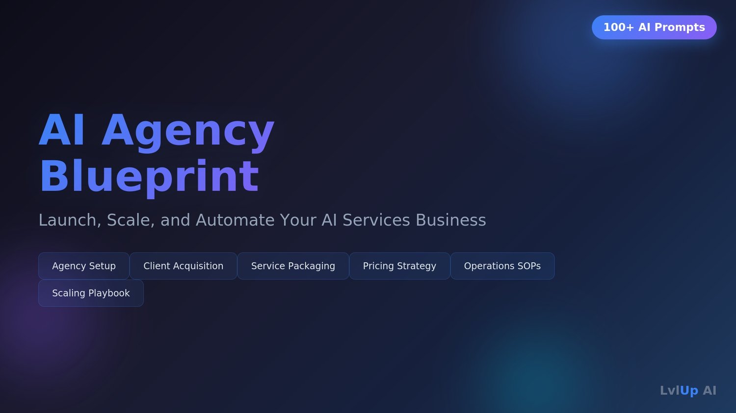 The AI Agency Blueprint gives you 134+ battle-tested ChatGPT prompts to launch, run, and scale an AI services business — even if you've never run an agency before.