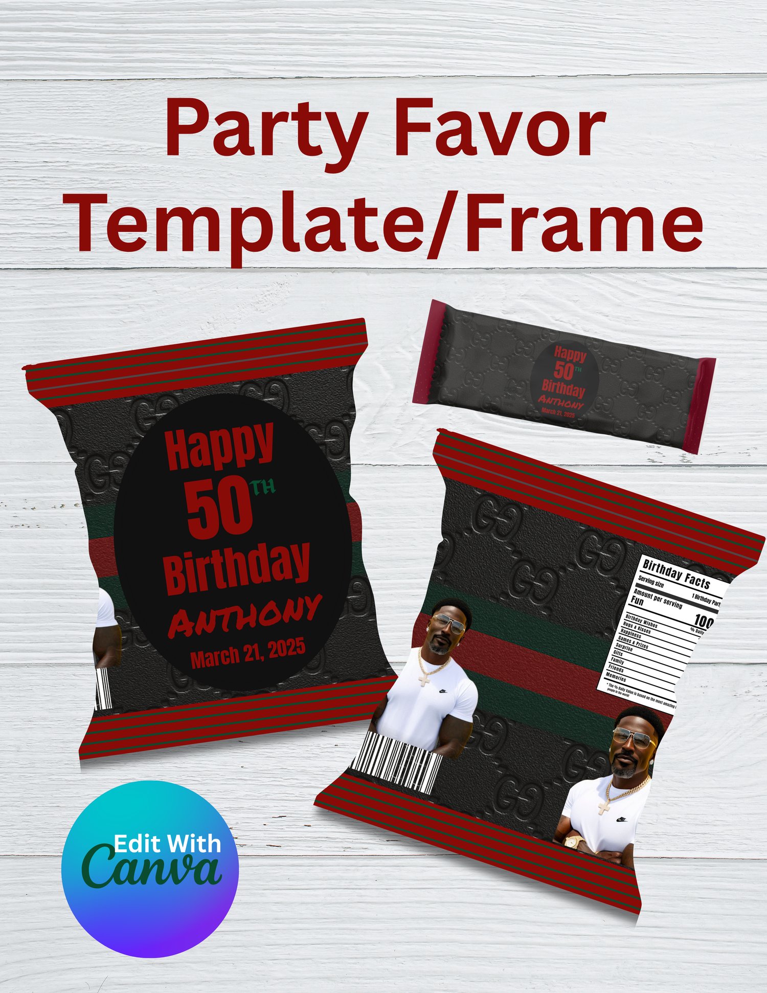 Editable Chip Bag & Hershey's Template | Gucci Inspired Party Favor | Canva Digital Download