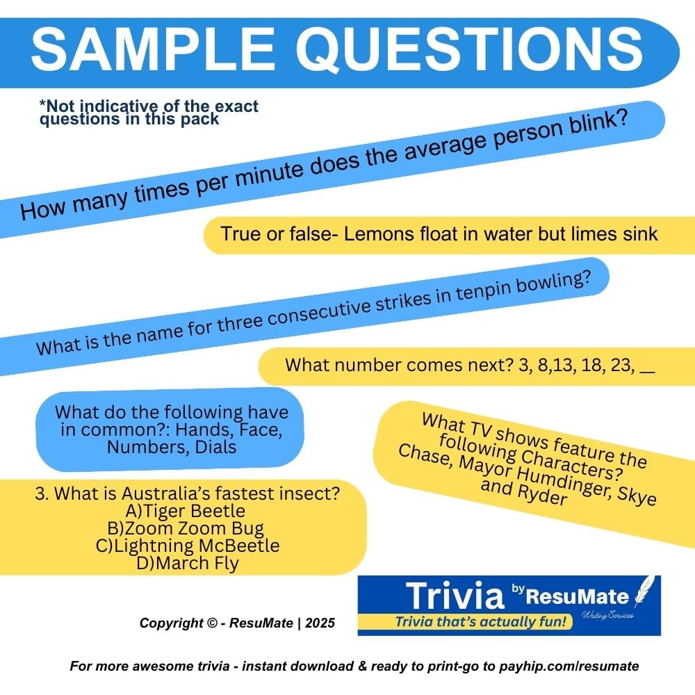 Printable Trivia Family Pack – 60 Minutes of Trivia Fun! | Great for All Ages, Events & Parties