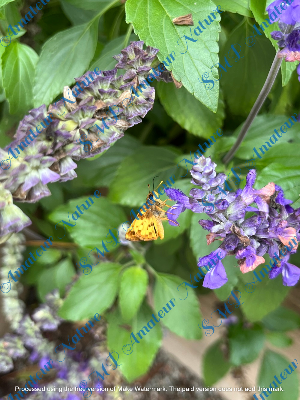 Amateur photograph of a Zabulon skipper butterfly male (Lon zabulon) on some purple flowers. Zabulon skipper males have vastly different coloration than females, which are brown. Image taken in Virginia, USA. Image pixels 3024x4032. Image easily resized as required for buyer needs. Purchase gives image without any watermark.